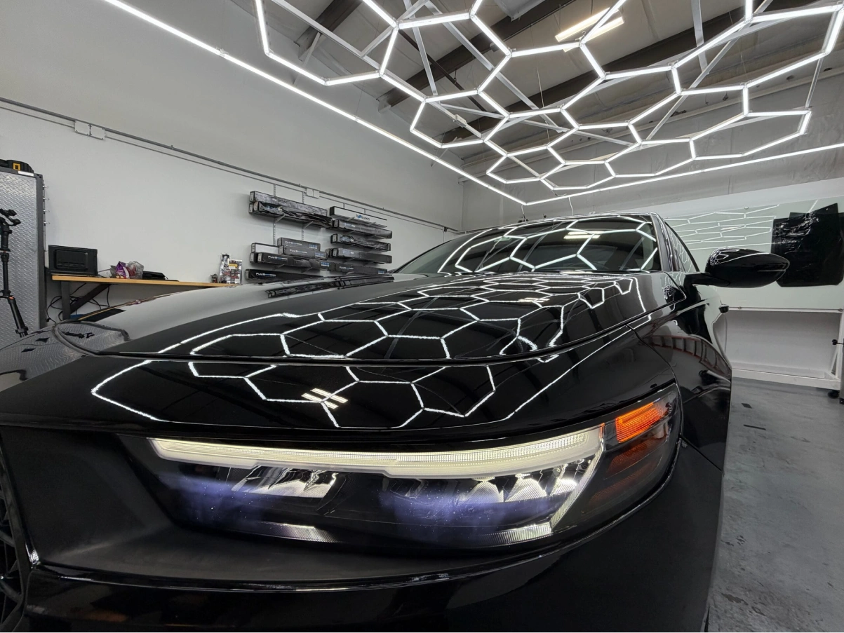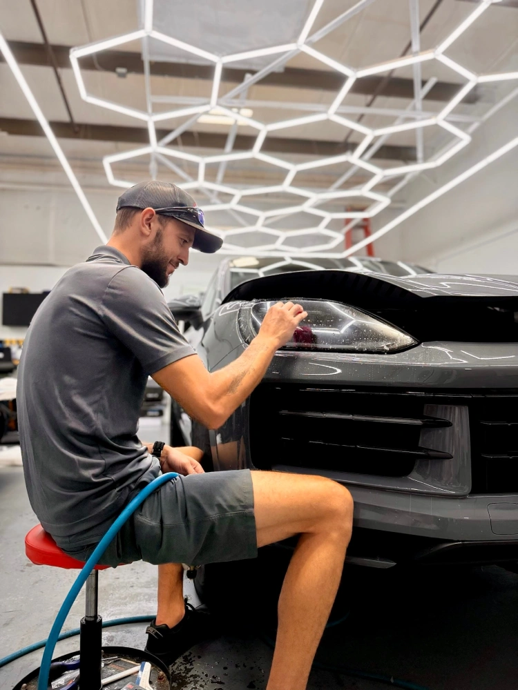 Using controlled sanding and polishing techniques, we remove oxidation and surface imperfections that cause haze and discoloration. This process levels the surface and restores clarity without damaging the headlight material.